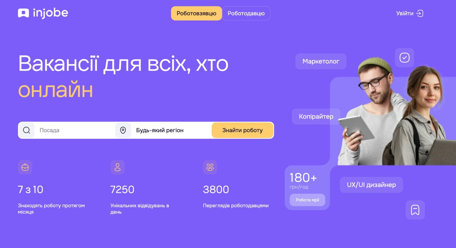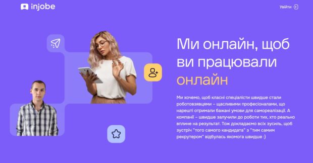 Сайт з пошуку онлайн роботи. Ми хочемо, щоб класні спеціалісти швидше стали роботовзявцями – щасливими професіоналами, що нарешті отримали бажані умови для самореалізації. А компанії – швидше залучили до роботи тих, хто реально вплине на результат. Тож докладаємо всіх зусиль, щоб зустріч “того самого кандидата” з “тим самим рекрутером” відбулась якомога швидше 🙂