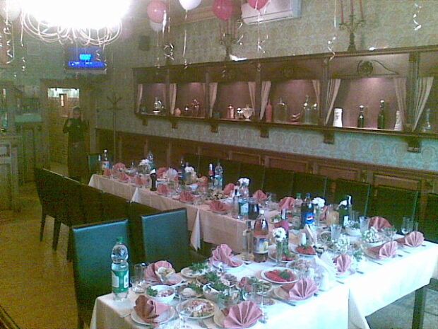 Планируете незабываемый праздник: день рождения, именины, крестины, свадьбу? Хотите угодить каждому гостю, сделать праздник веселым, а праздничный стол вкусным? Тогда с этим вы пришли по адресу. Наш повар угостит всех вкуснейшими блюдами, предварительно тщательно составив с вами меню, а официанты в «Весёлой Куме» уделят максимум внимания каждому, обеспечат комфорт, ведь в трех залах, где с легкостью можно разместить 20-45 человек, есть кондиционеры, а скучать вам точно не придётся, так как по одному вашему желанию можно включить музыку на лютой вкус. Потому что ваш праздник – это наш праздник и мы заинтересованы в том, чтобы все прошло идеально.