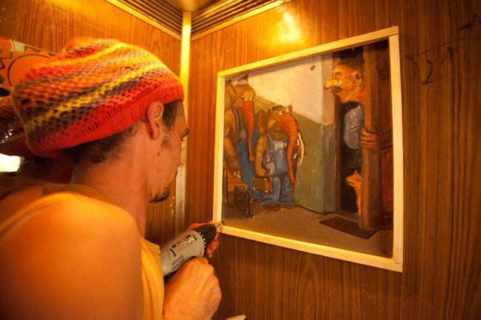 Очутиться в лифте, словно в картинной галерее, можно совершенно случайно. Разместить в лифтах столицы 50 репродукций картин известных художников решил основатель арт-группы «МММ» Дмитрий Корниенко вместе со своими друзьями-художниками.