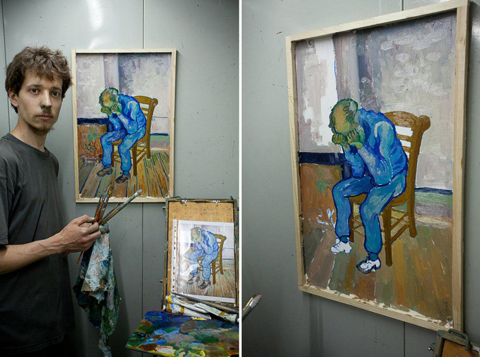 Идея появилась, когда Дмитрий был в гостях у мамы на Троещине и увидел в лифте пустые рамки – там когда-то размещали рекламу. Картинами украсили лифты в разных районах Киева. К сожалению, до сегодняшнего дня уцелела только треть репродукций. Интересно, что ценителей высокого «лифтового искусства» больше оказалось на Троещине и Борщаговке, чем в центре Киева, где картины провисели недолго.