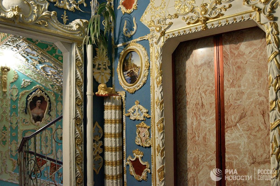 В доме по улице Радужной 11-а есть оригинальный лифт с лепкой, зеркалами и портретами женщин в золотых рамах. Все это дело рук пенсионера Владимира Чайки, который не только лифт преобразил, но и лестничные клетки превратил в «киевский Версаль».