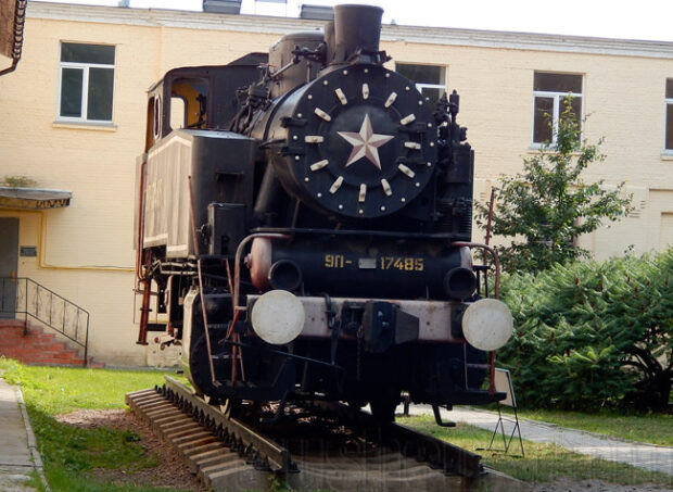 Пройдя мимо музея КПИ и не доходя до здания Музея Космонавтики, вы обнаружите парочку экспонатов, чьи истории смогут вас заинтересовать. Начнем с Паровоза 9П №17485, который был в строю до 2001 года, а после этого был передан музею.