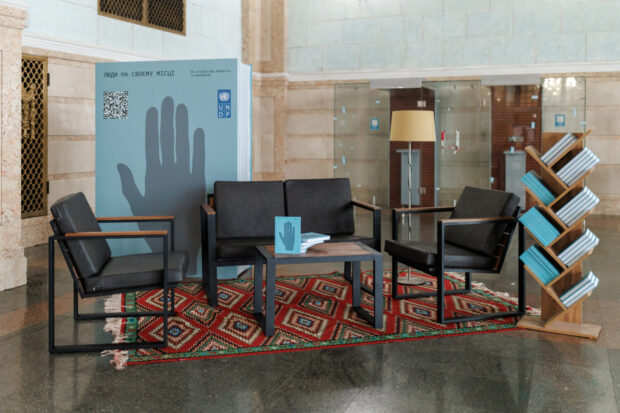 На Центральному залізничному вокзалі Києва відкрили експозицію «Читальня однієї книги», присвячену виданню «Люди на своєму місці», де описані 60 історій українців та українок, які зберігають людяність і підтримують одне одного попри виклики війни.