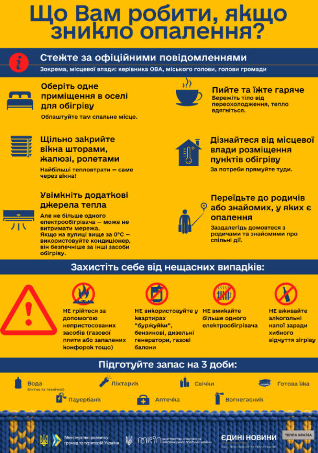 • Переїдьте до родичів та знайомих, у яких є опалення. Заздалегідь домовтеся про спільні дії.