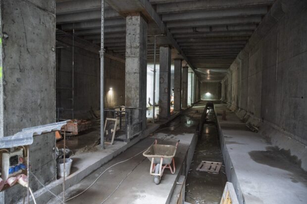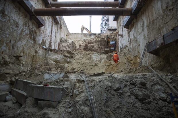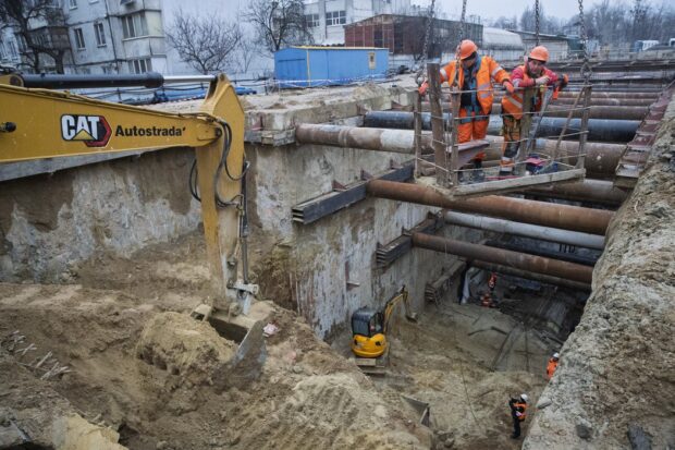Він зазначив, що роботи відбуваються у складних гідрогеологічних умовах і наявності розгалуженої мережі комунікацій на різних глибинах залягання, в щільній міській забудові.