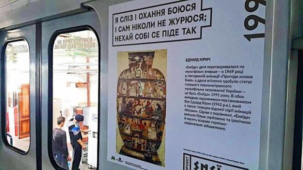 Обычный поезд киевского метро превратился в произведение искусства. По “синей” (Куреневско-Красноармейской) ветке два месяца будут курсировать уникальные тематические вагоны, созданные специально для проекта “Энеида”.