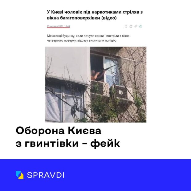 “Ймовірно, світлину, на якій чоловік із гвинтівкою «полює» на іранські дрони зі свого балкона, вкинули в українські соцмережі російські пропагандисти. Вона мала би показати, що столиця нібито не має захисту від БпЛА і кияни вимушені самі боротися з дронами. Насправді це зовсім не так”, – пишуть в центрі.