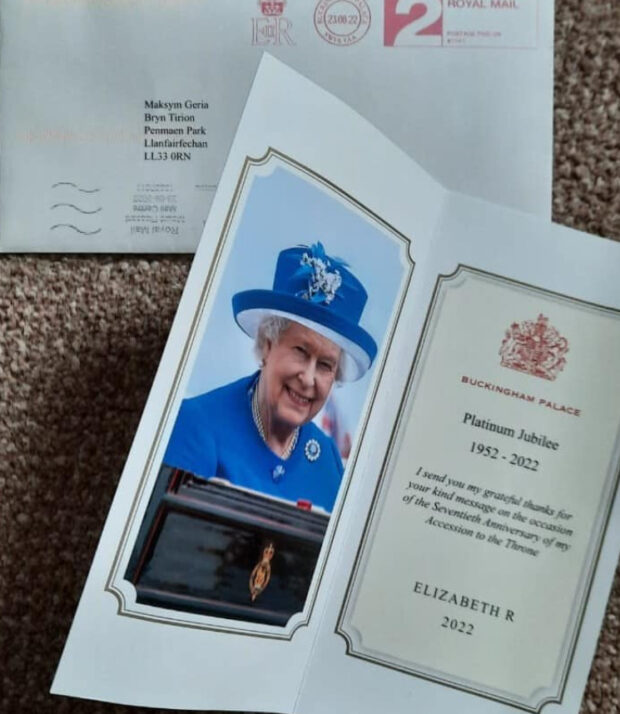 24 серпня, зовсім несподівано, напередодні свого дня народження, Максим отримав омріяний лист-відповідь, який збереже на все своє життя. Адже це не тільки пам’ять про сам лист від Королеви, а й відтепер – пам’ять про те, що він встиг отримати його від справжньої Легенди, яка нещодавно пішла з життя”, – зазначають в Українській громаді.