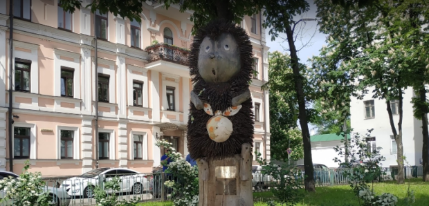 Памятник “Ежику” был установлен в 2009 году на пересечении улиц Золотоворотской, Рейтарской и Георгиевским переулком.