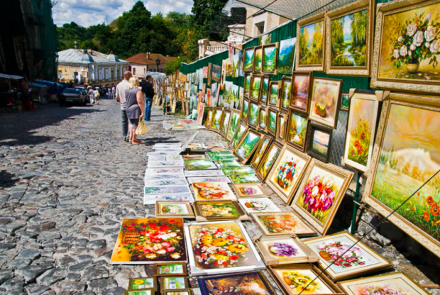 Сейчас на Андреевском спуске торгуют картинами, антиквариатом, сувенирами и другими интересными изделиями. Тут проводят ярмарки, поэтому улицу называют “киевским Монмартром” или вернисажем под открытым небом.