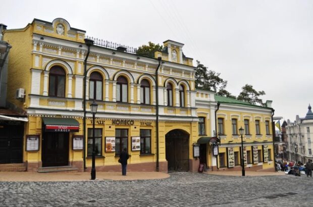 В 19-м веке в здании будущего театра на Андреевском спуске, 8 жил подольский ювелир. В 20-м столетии здесь располагались коммуналки. Киевский академический театр “Колесо” работает с 1988 года. Его создала группа энтузиастов. С первого дня театр возглавляет народная артистка Украины Ирина Клищевская.