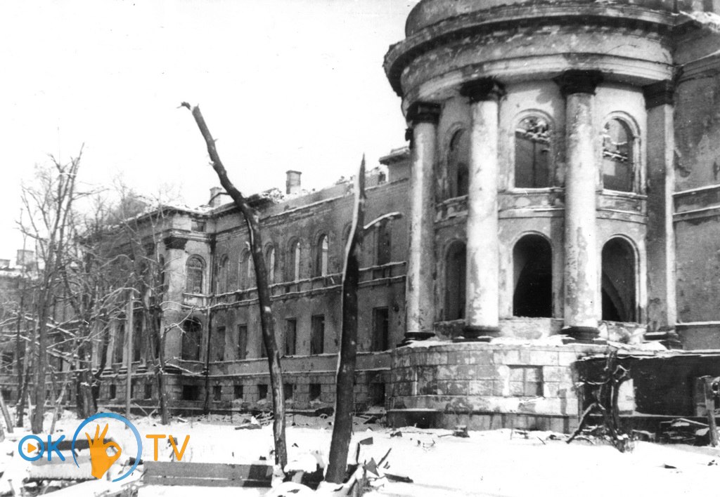 Знаменитый красный корпус университета им. Т.Г. Шевченко пострадал во время войны, но его восстановили достаточно быстро и сохранили довоенный облик.