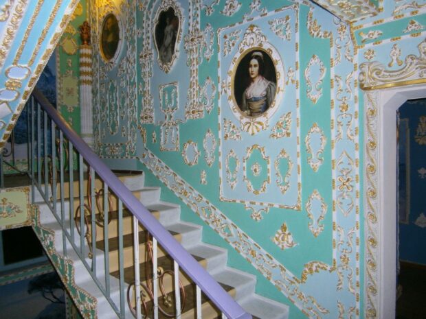 Пенсионер Владимир Чайка решил использовать заслуженный отдых для творческой реализации. Обычный серый подъезд он превратил в залы эпохи рококо. Лепнина, позолота, фотообои и репродукции старинных портретов в ажурных рамах теперь покрывают стены. В подъезде стоят вазы с цветами, и даже такому неказистому сооружению как мусоропровод Владимир отвел свою роль — теперь жители бросают мусор в подобие античной колонны. Соседи таким дизайном подъезда очень довольны.