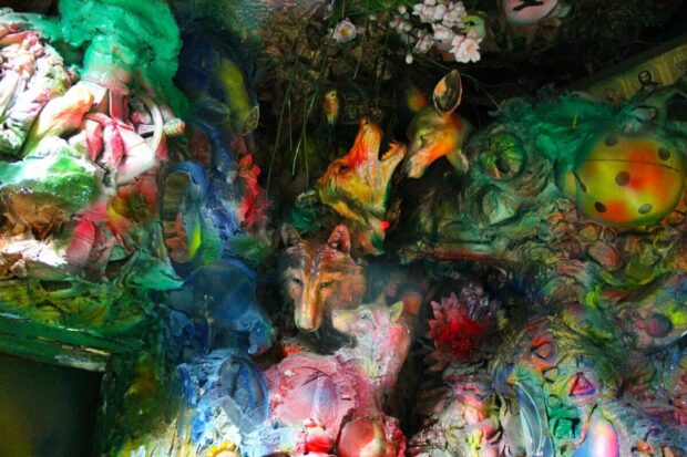 В рельефных разноцветных стенах можно увидеть фигурки птиц, животных, людей, мультяшных персонажей, предметы непонятного происхождения. Все это можно охарактеризовать только одним словом — психоделика. Посетителей накрывало чувство нереальности, как на другой планете или в бредовом сне. Будто всего этого мало, стены покрыты флюоресцентной краской и светятся в темноте. Достойно места в PinchucArtCentre!