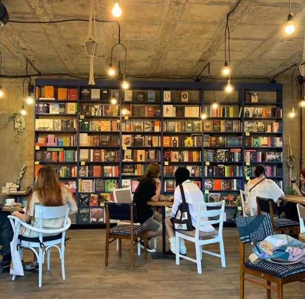 В меню є навіть келих вина, й коштуватиме таке задоволення 100 гривень. До слова, це вже не перша книгарня закладу, адже свій стартап власники запустили у 2016 році у Львові. Завітати до “Книжкового Лева” можна цілою родиною, час від часу тут проводять читання для дітей, а ще тут є власний книжковий клуб. Загалом, місце варте уваги.