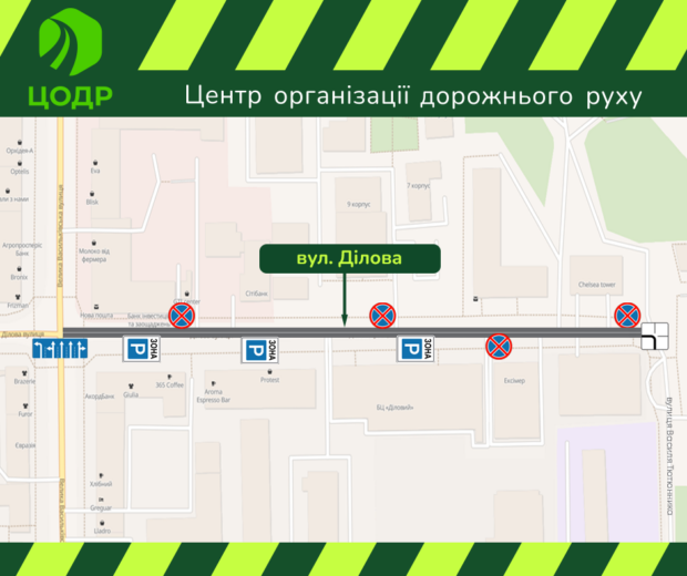 На вул. Діловій організовано двосторонній рух та облаштовано зони для стоянки автомобілів.